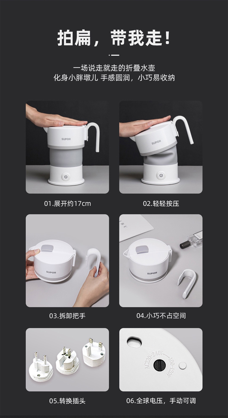 苏泊尔电热折叠旅行烧水壶